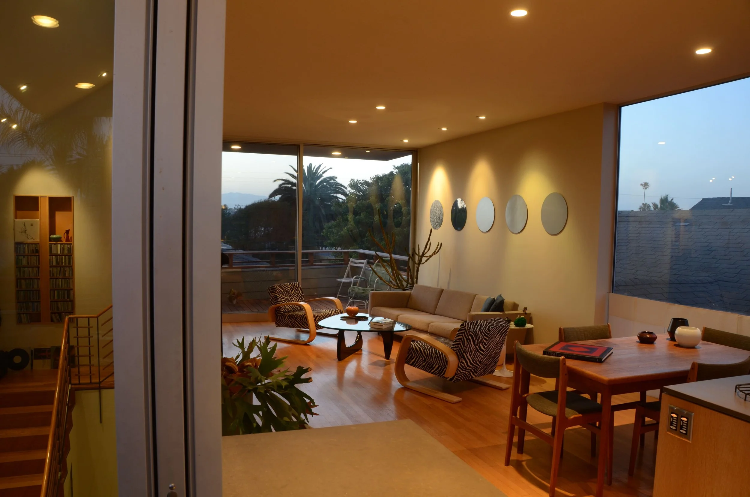 Windward Circle is a neighborhood in Venice that was famously developed as a community of beach bungalows by Abbott Kinney at the turn of the 20th century. Most properties are funky, small and narrow. Projects are therefore designed to be compact and vertical. This project started as a small apartment over a garage, on one end of a through-lot between two streets. It was developed into two stand-alone houses, each fronting an opposite street.